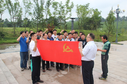 在紀(jì)念碑下,全體黨員面對鮮紅黨旗舉起右手高聲宣誓,重溫入黨誓詞,表達(dá)為黨的事業(yè)奮斗終身的決心。隨后,全體人員在革命烈士紀(jì)念碑前,全體肅立,向革命先烈默哀致敬,行三鞠躬禮,追思革命先烈的豐功偉績;顒幼詈髤⒂^了革命烈士紀(jì)念館,進(jìn)一步了解革命先烈們艱苦卓越的斗爭歷史和大無畏的革命獻(xiàn)身精神。